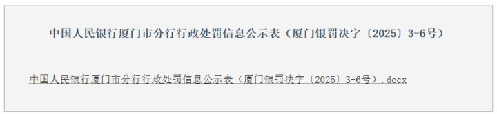 此外,中国人民银行厦门市分行还对中国民生银行股份有限公司厦门分行的三名人员做出了处罚。